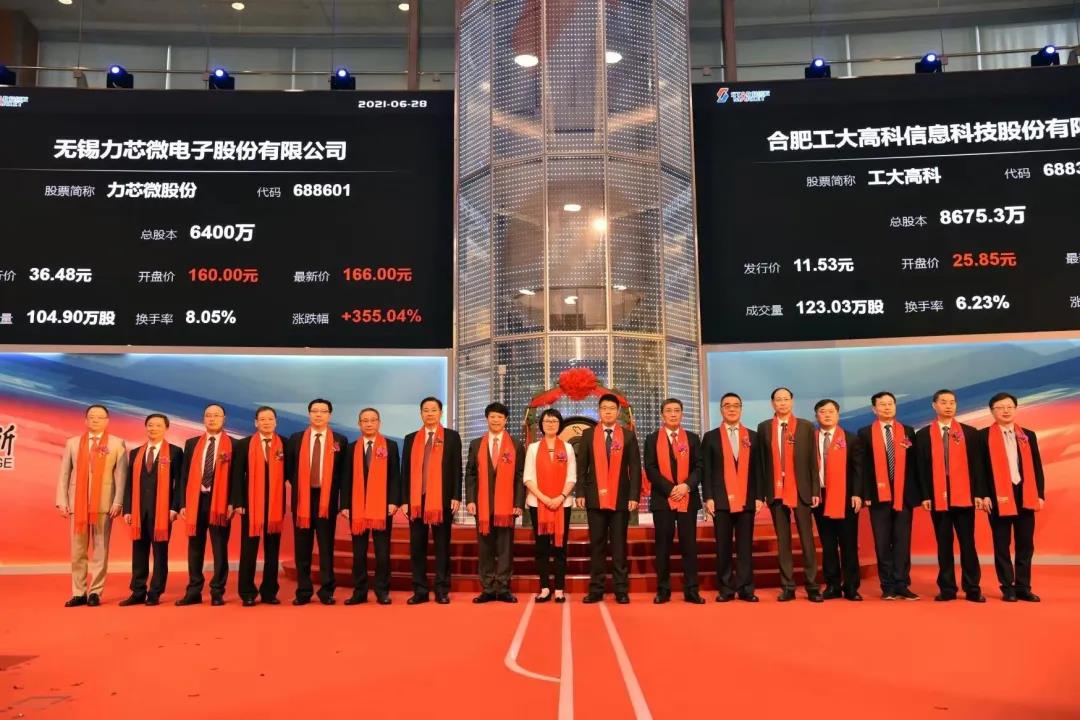 6月28日上午,无锡力芯微电子股份有限公司(简称“力芯微”股票代码“688601”)在上海证劵交易所科创板成功挂牌上市。力芯微成为2021年无锡市首家科创板上市企业,也是高新区第6家,第3家集成电路上市企业。无锡市人民政府副市长高亚光,无锡高新区党工委副书记、管委会主任、新吴区委副书记、区长崔荣国与企业负责人共同敲响了开市宝锣。市地方金融监管局局长顾伟,区领导朱晓红,区党政办、发改委、工信局、人社局、税务局、科创中心、太科园管理办、高新创投、基地公司等部门负责人及力芯微高管、股东、券商代表出席上市仪式。