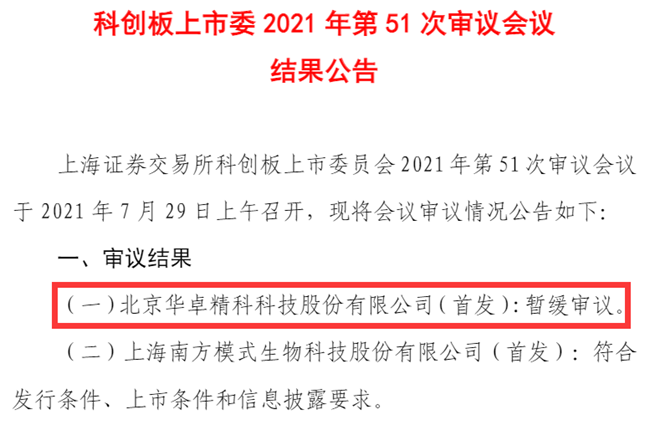 7月29日,据上交所披露科创板上市委2021年第51次审议会议结果显示,北京华卓精科科技股份有限公司(以下简称:华卓精科)科创板IPO被暂缓审议。