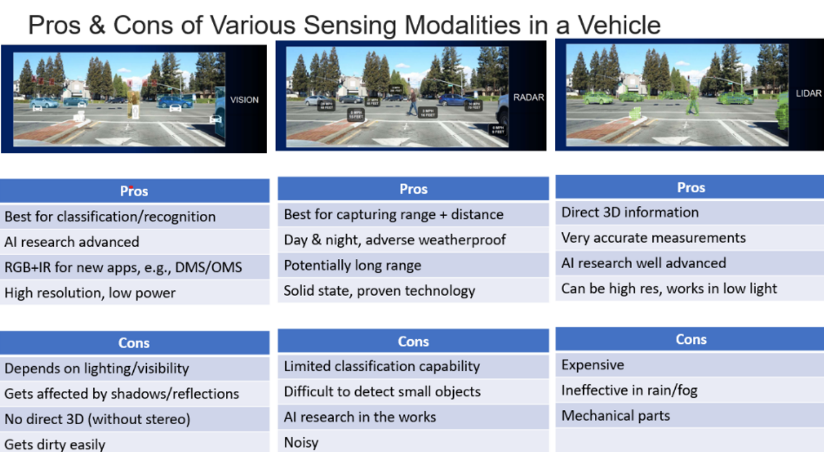 现在自动驾驶设计面临的挑战之一是不同传感器的局限性。要实现安全的自动驾驶,可能需要进行传感器融合。关键问题不仅是传感器的数量、类型和部署位置,还包括AI/ML技术应如何与传感器交互来分析数据,从而做出最佳驾驶决策。