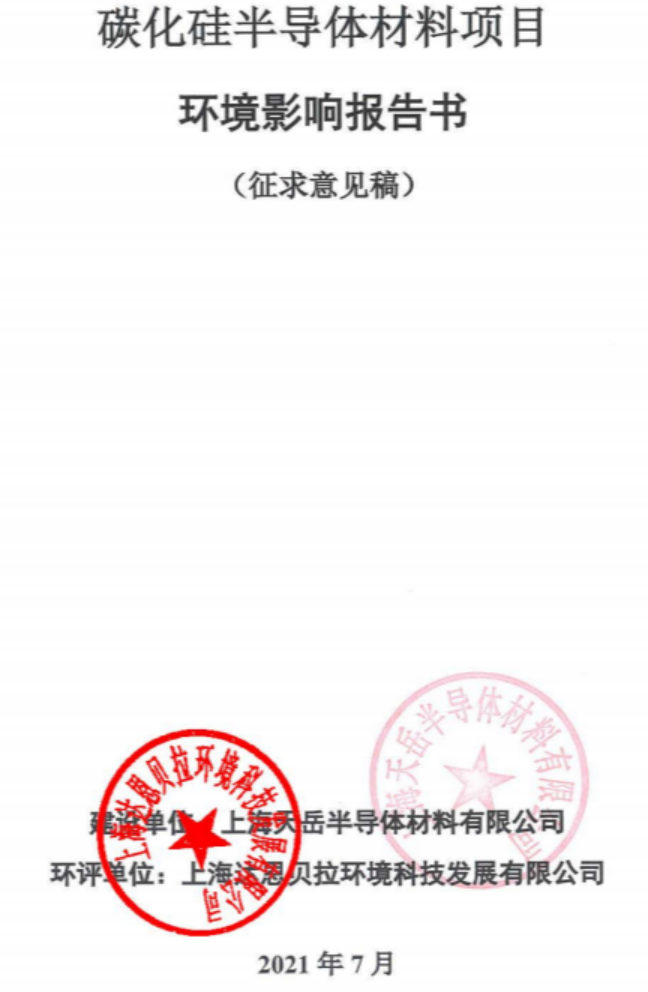 预计7月下旬开工,上海天岳碳化硅半导体材料项目环评报告书公示