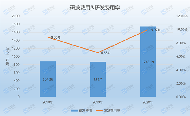 具体来看,报告期内,铖昌科技研发费用分别为884.36万元、872.7万元、2705.98万元,占营收的比例则分别为8.86%、6.58%、15.47%。可以看出,公司仅仅在2020年临上市前夕,加大了研发费用的投入,2019年研发费用一度有所缩减。