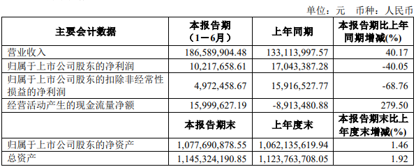 8月19日,敏芯股份发布半年报称,2021年上半年,公司实现营业收入为1.86亿元,同比增长40.17%;归属于上市公司股东的净利润为1022万元,同比下降40.05%。