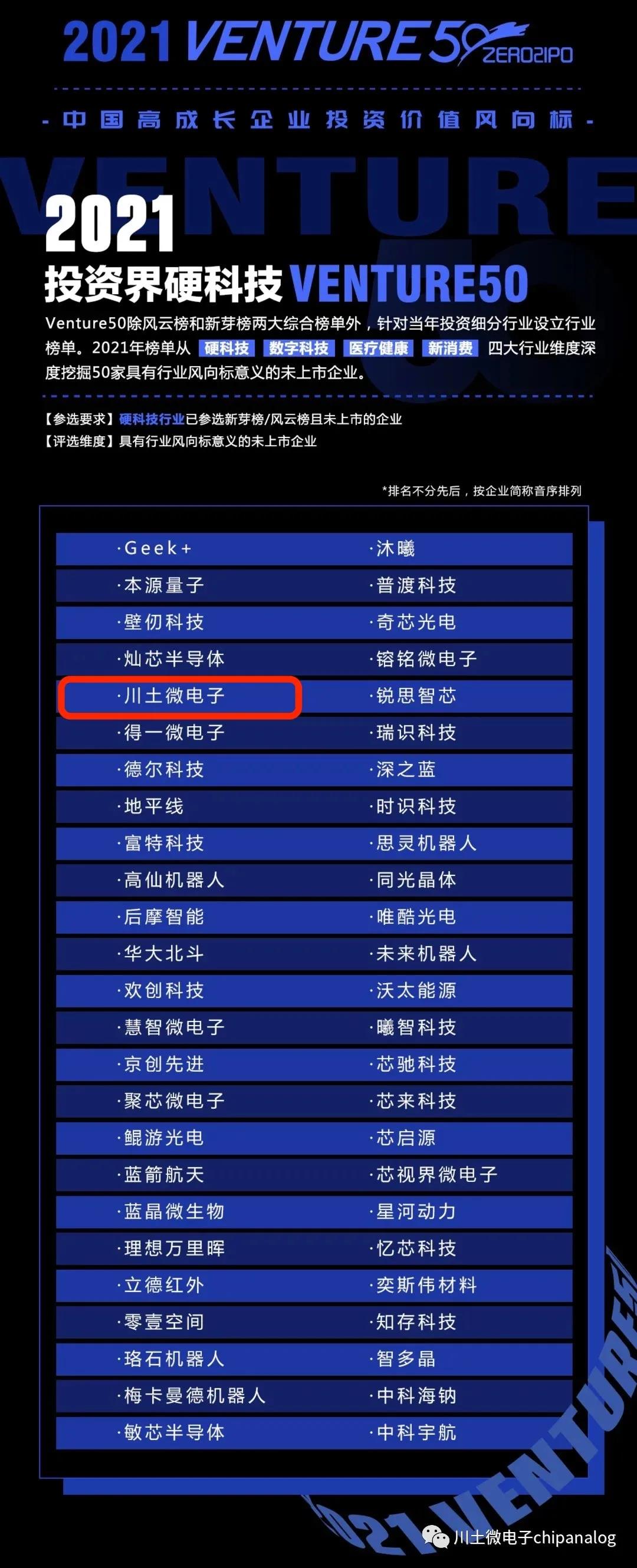 川土微电子荣登2021“ VENTURE风云榜50强”和“投资界硬科技VENTURE 50”双榜单!