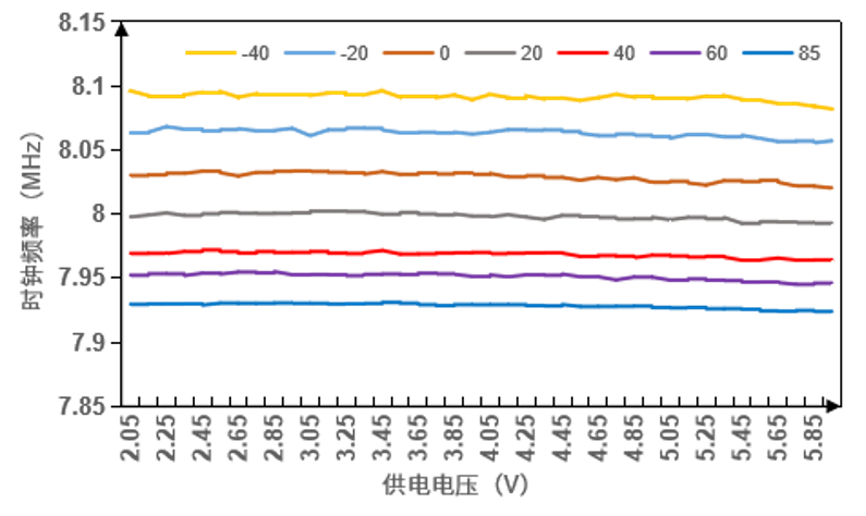 芯海MCU-8MHz内部时钟漂移VS温度VS供电电压