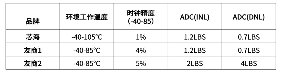 由于汽车长期需要在温差大的环境下工作,为了确保驾驶员和车身的安全,对MCU的可靠性有严格要求。芯海科技的CS32F030以及CS32F031系列MCU除环境工作温度高达105℃外,内部时钟信号精度更是在全温度范围内,温漂可控制在1%以内,精度远远高于其他主流MCU厂商的5%精度。这样确保了MCU与车身通信的准确和稳定性,防止信号紊乱造成错误控制,有效的确保车身通讯安全。