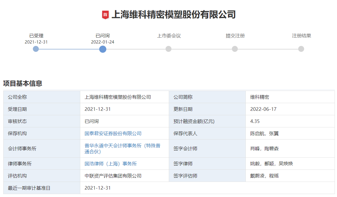 (文/姜翠)2021年12月31日,深圳证券交易所正式受理了上海维科精密模塑股份有限公司(以下简称“维科精密”)创业板上市申请。