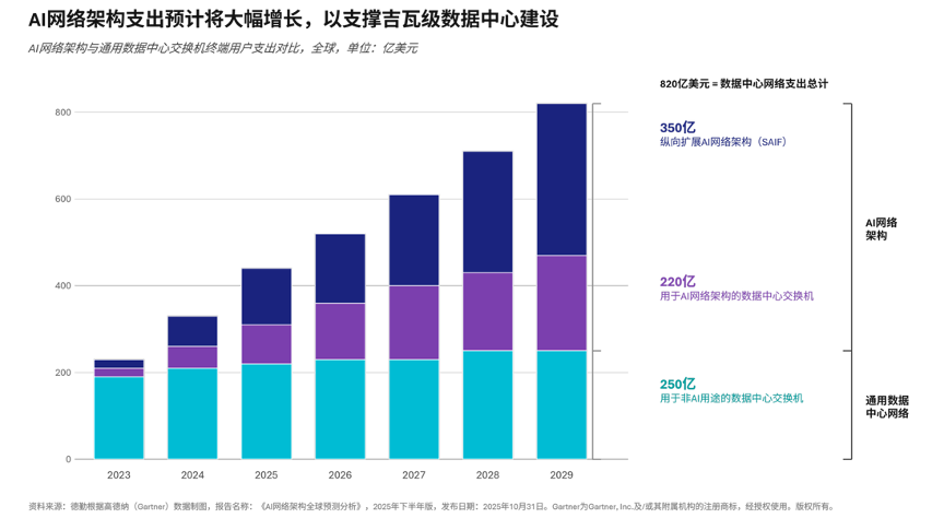 此外,为应对AI工作负载每年三到四倍的增长,Chiplet技术被广泛采用以提升良率与能效。HBM内存正被集成至逻辑芯片附近,实现TB/s级数据传输速度。共封装光器件(CPO)和线性可插拔光模块(LPO)将在2026年广泛应用,降低功耗30%-50%,提升带宽效率。AI网络架构支出预计在2024–2029年间以38%的复合年增长率增长。同时,随着AI、半导体和云基础设施提供商之间的战略联盟预示着新一轮AI计算资本周期的到来,2025年的投资很可能在2026年持续或加速,形成资本和计算资源双向流动的生态系统,使芯片公司通过“循环融资”实现AI数据中心堆栈垂直整合。