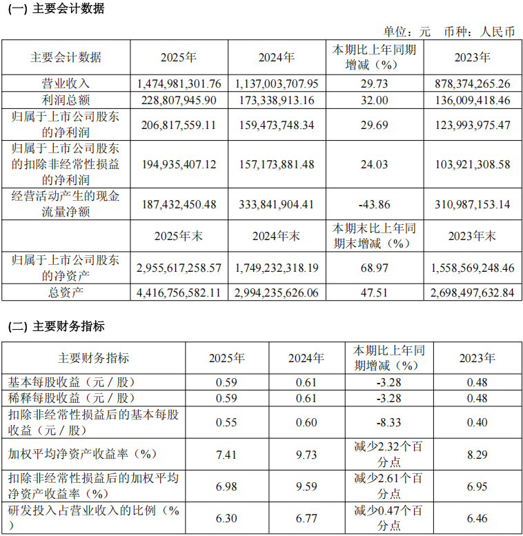 4月1日,湖北兴福电子材料股份有限公司披露了《2025年年度报告》。报告期内,公司实现营业总收入14.75亿元,较上年同期增长29.73%;实现归属于上市公司股东的净利润2.07亿元,较上年同期增长29.69%。