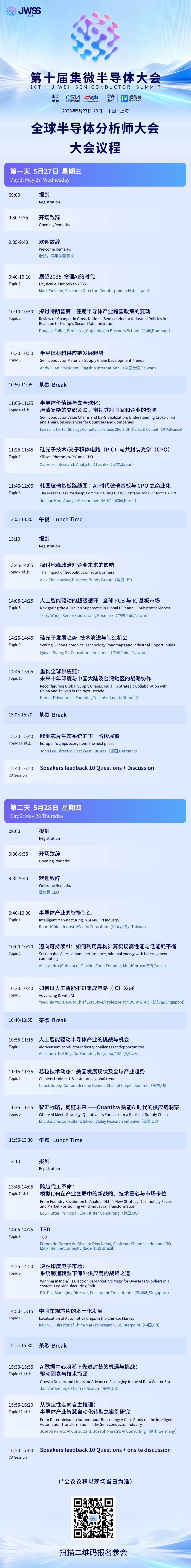 在充满不确定性的半导体行业,精准的数据与深度的分析是企业穿越周期的罗盘。5月27-29日,第十届集微半导体大会将在上海张江隆重举行。作为大会最具“头脑风暴”高度、深度和广度的核心论坛之一,由爱集微和“IC 50 委员会”联合主办的集微全球半导体分析师大会将于 5 月 27-28 日在上海拉开帷幕。