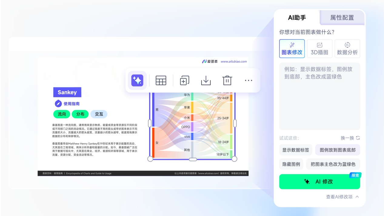 针对这一行业痛点,武汉大学王琼教授团队推出AI图表智能体“爱图表”(aitubiao.com),据介绍,该产品核心逻辑是不止于生成,更可深度编辑。