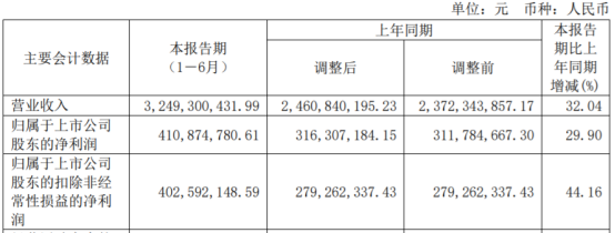 8月27日,昊华科技发布2021年半年度报告称,上半年,公司实现营业收入32.49亿元,同比增长32.04%;实现归属于上市公司股东的净利润4.11亿元,同比增长29.90%。