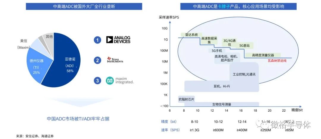 ADC芯片具有高技术壁垒、不可替代、广泛应用的特点,尤其是高速高精度ADC,在速度和精度不可同时兼得的技术原理背景下更是具有极高的研发难度,不可否认的是目前国内ADC的研发与国际领先水平相比有着很大的差距。1996年7月,以西方国家为主的33个国家在奥地利维也纳签署了《瓦森纳协定》,协议的签署更是让高性能ADC成为了发达国家出口受限的战略性管制产品,其重要地位不言而喻。正因如此,国产替代,刻不容缓!