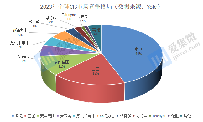 根据Yole数据,2023年全球前十大CIS供应商分别为索尼(45%)、三星(19%)、豪威集团(11%)、安森美(6%)、意法半导体(5%)、SK海力士(5%)、格科微(3%)、思特威(2%)、Teledyne(1%)、佳能(1%),其余厂商合计市场份额约4%。