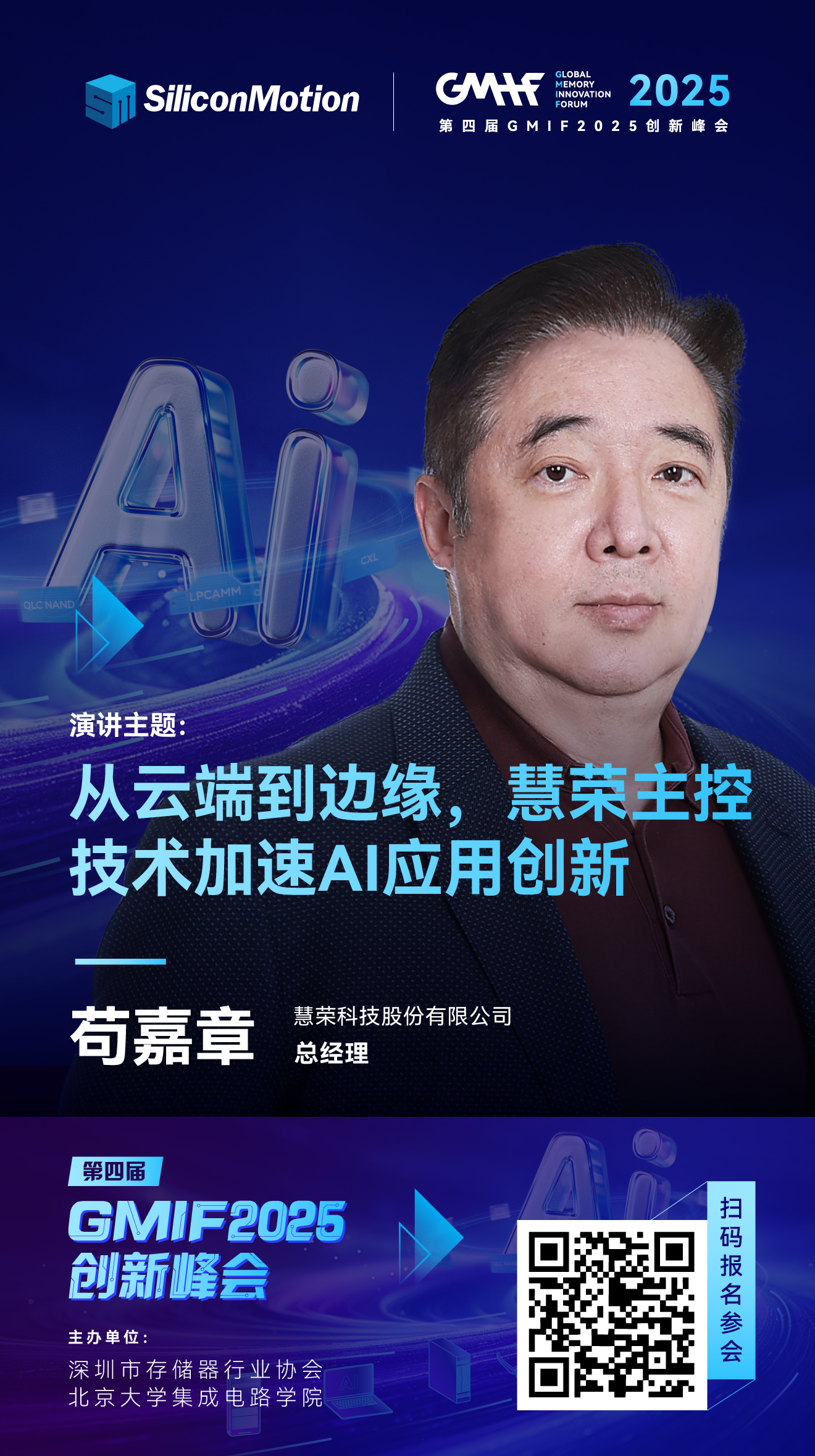在即将召开的GMIF2025全球存储器产业创新峰会上,慧荣科技总经理苟嘉章将发表主题演讲《从云端到边缘,慧荣主控技术加速AI应用创新》,系统分享主控技术如何驱动从云端到边缘的全场景存储升级,涵盖PCIe Gen5/Gen6技术突破、AI导向的性能与可靠性优化,以及主控在计算存储融合、DPU协同与CXL架构中的未来角色。