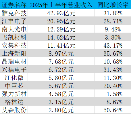 营收增速超30%的企业包括艾森股份(50.64%)、安集科技(43.17%)、上海新阳(35.67%)、雅克科技(31.82%)、兴福电子(31.43%),均以半导体材料为主营业务,且上半年实现关键产品技术突破与客户拓展的双重利好。