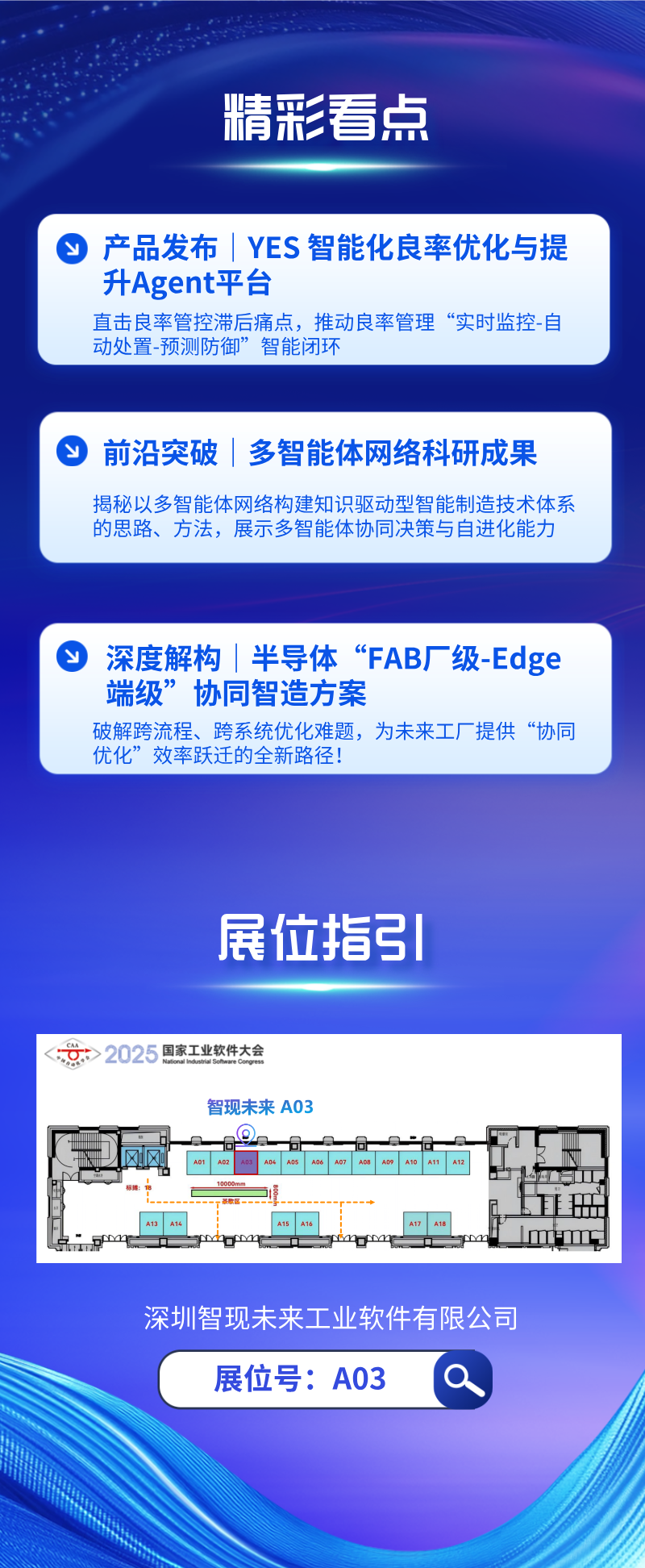 智现未来将携半导体工厂“FAB厂级-Edge设备端级”全域协同智造方案,及多智能体突破性科研成果亮相大会,并重磅发布融合多智能体技术与一线半导体制造场景需求的新产品,精准直击良率管控滞后痛点,为制造效率升级提供新路径。