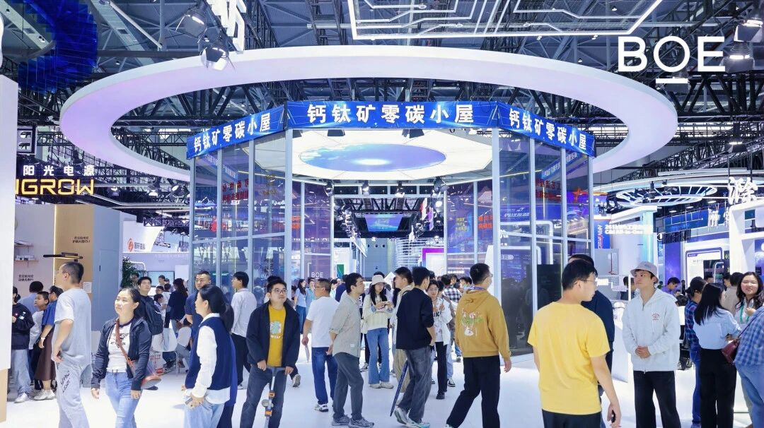 在坚持技术创新的同时,BOE(京东方)深度践行“科技+绿色”的发展模式,发布了行业首个可持续发展品牌“ONE”,以“开放包容(Open)、创新引领(Next)、永续生态(Earth)”三位一体理念为核心,重新定义科技企业的责任边界。在刚刚结束的东方全球创新伙伴大会2025(BOE IPC 2025)上,BOE(京东方)更是重磅发布了集团可持续发展战略,建立了“开放创新、环境永续、共赢生态、以人为本、正道经营、创益未来”六大战略支柱,与可持续发展品牌相互支撑、共同推动科技服务社会,守护人类未来。在可持续发展战略和品牌的引领下,BOE(京东方)不断拓展新的应用场景,将可持续发展基因融入产品研发、生产的全流程环节,在本次大会电子信息展区的中央,BOE(京东方)采用透光光伏玻璃重磅打造了一个充满科技感的八角型零碳小屋,其内展示了搭载钙钛矿太阳能电池技术的系列产品。其中,2.42㎡的柔性光伏组件是目前公开已知的全球最大尺寸柔性光伏组件产品,它突破传统光伏刚性限制,能够轻松适应多种曲面场景需求。此外,零碳小屋的中央展台上,BOE(京东方)还展示了光伏桌牌、光伏充电板、光伏瓦、光伏电动车等产品。该展区不仅展现了BOE(京东方)在钙钛矿光伏领域的技术突破与产业布局,也是对未来绿色生活方式的生动演绎,彰显了BOE(京东方)深刻践行可持续发展战略,推动产业生态绿色发展的责任担当。