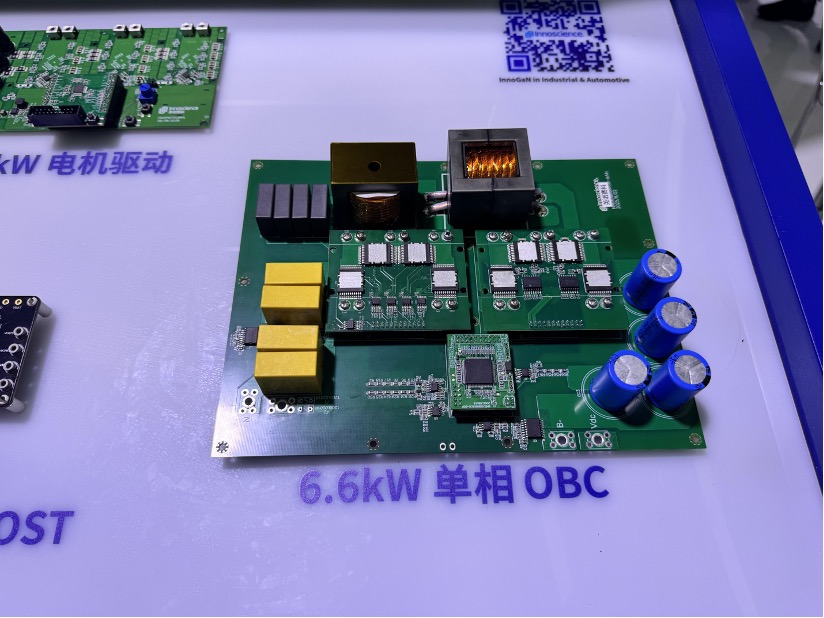 其中,6.6kW单级OBC方案尤为引人注目,其峰值效率达到97%(在220Vac条件下),尺寸仅为224×186×48mm,功率密度高达54W/inch³,采用了英诺赛科的ISG6121BTA和INV650TQ015E芯片。