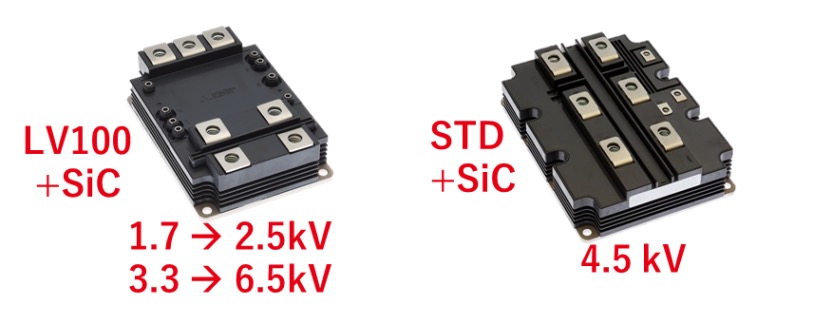面向高压输配电应用,采用 LV100 封装,额定电压3.3kV、电流200–800A。创新的 SBD 嵌入式设计使芯片面积缩减54%,开关损耗降低58%,彻底消除双极退化风险。该模块已于2023年5/6月正式发布并量产,目前已应用于全球 HVDC输电 与轨道交通系统。
