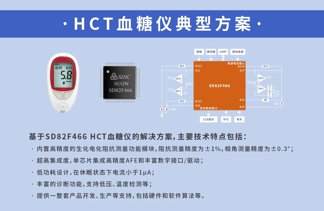 晶华微此次重点展示了压力变送器典型方案、液位/温度变送器典型方案、HCT血糖仪典型方案、冰箱显示板典型方案、7~17串高精度AFE典型方案。