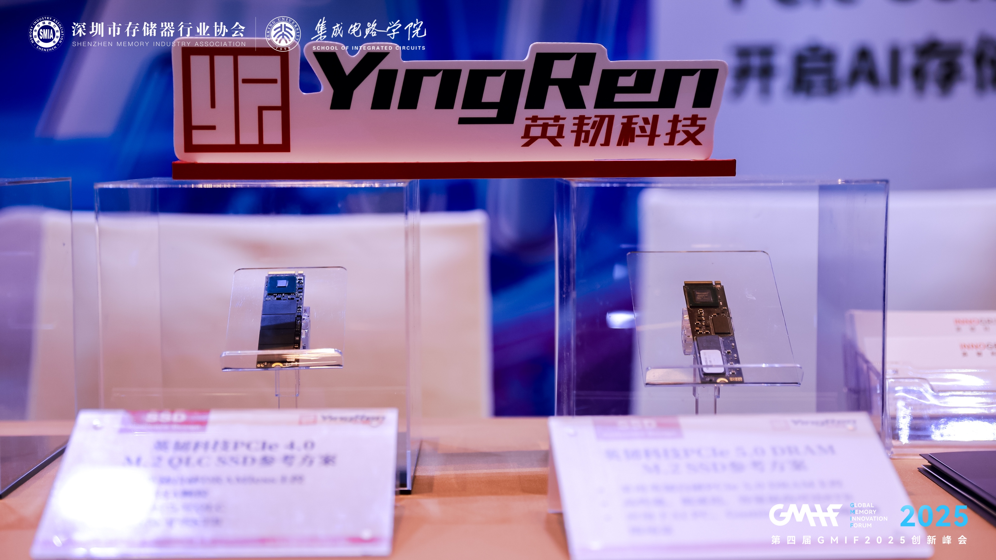 英韧科技在展会上重点展示了面向AI场景的PCIe5.0/Gen6高性能SSD系列及配套存储解决方案,核心展品包括洞庭-N3系列PCIe5.0企业级SSD、PCIeGen6前瞻技术原型、边缘计算专用存储方案。展台同时通过屏幕展示了YRS820PCIe5.0消费级主控(大陆首颗量产的RISC-V架构主控)的性能测试数据,以及与长江存储等国产厂商联合打造的全国产化SSD生态方案,全面呈现了公司在存储技术创新和产业化方面的综合实力。
