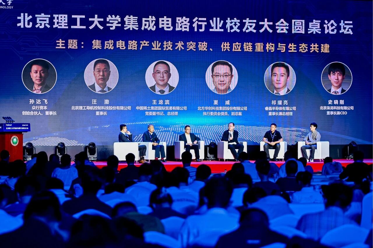 随后进行的圆桌论坛环节,由1996级本科、2000级硕士校友,众行资本创始合伙人、董事长孙达飞主持。1998级博士校友、北京理工导航控制科技股份有限公司董事长汪渤,2001级硕士校友、中国稀土集团国际贸易有限公司党委副书记、总经理王龙滨,北方华创科技集团股份有限公司执行委员会委员、副总裁夏威,1999级本科校友、睿晶半导体有限公司董事长兼总经理祁耀亮,2009级本科、2019级博士校友,北京枭龙科技有限公司董事长兼CEO史晓刚,以“集成电路产业技术突破、供应链重构与生态共建”为主题,从不同层面探讨了集成电路产业发展现状,提出了一系列富有建设性的观点与建议。