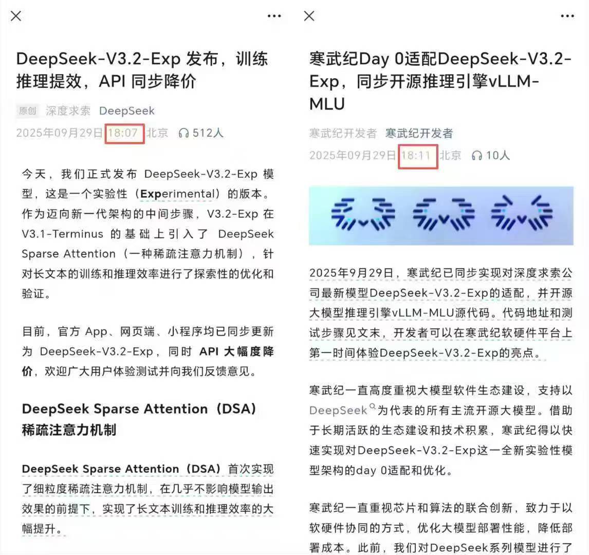 2025 年 9 月 29 日,深度求索公司发布新一代模型架构 DeepSeek-V3.2 ,引发行业广泛关注。令人瞩目的是,在该大模型发布的同时,寒武纪也官宣了对 DeepSeek-V3.2 的适配,并开源大模型推理引擎 vLLM 源代码。