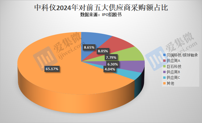 从采购数据来看,2022年-2024年中科仪向前五名供应商的采购金额占比分别为35.97%、30.33%、34.83%,均未超过40%,且不存在向单个供应商采购比例超50%的情况,符合“不依赖少数供应商”的行业安全标准。