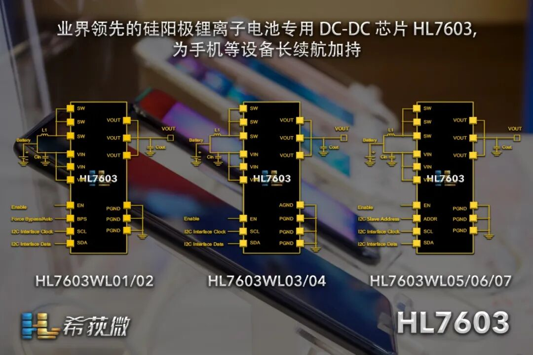 希荻微敏锐捕捉到这一市场趋势,率先布局硅负极电池应用场景,推出HL7603等定制化DC/DC芯片解决方案。该系列产品以宽电压范围、高效能转换效率和智能限流技术为核心优势,有效提升电池带载能力与设备续航表现,已成功导入小米、OPPO、vivo、传音等全球主流手机品牌供应链,成为AI手机续航优化的关键硬件支撑,并逐步拓展至AI眼镜等新兴智能终端领域,展现出持续的产品演进与市场拓展能力。