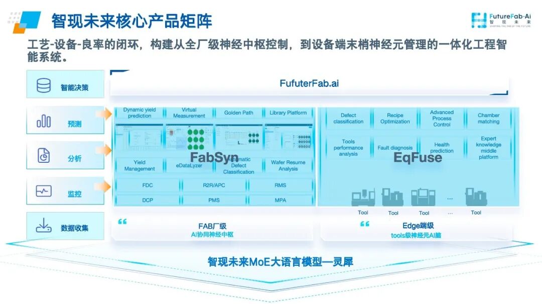 在技术创新的道路上,智现未来始终以研发为核心驱动力,将创新这一“最大变量”转化为企业发展的“最大增量”。依托深厚的技术积累,公司聚焦技术迭代,以“大模型+工程智能”为核心引擎,打造出Fabsyn厂级与Eqfuse设备级两大产品体系,构建起“厂级-设备级”全域协同制造系统,精准突破传统制造工厂中“数据割裂、知识沉淀难、协同效率低”的行业共性难题。