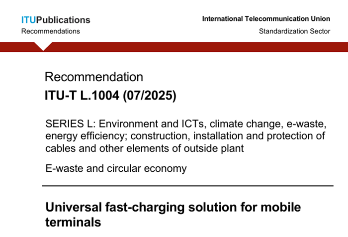 据中国信通院消息,由中国信息通信研究院(简称“中国信通院”)牵头,联合华为、OPPO、vivo共同制定的《移动终端通用快速充电解决方案》(标准号:ITU-T L.1004)已通过国际电信联盟(ITU)的审议,并作为国际标准正式发布。这是国际电信联盟史上首个为移动终端制定的全球性通用快速充电标准。