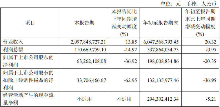 年初至报告期末,公司归属于上市公司股东的净利润1.98亿元,同比下降20.35%;归属于上市公司股东的扣除非经常性损益的净利润1.32亿元,同比下降36.95%,盈利表现受市场环境影响较为明显。