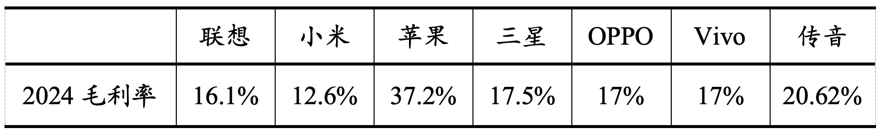 而对比手机端生产商毛利润,我们收集部分上市的手机厂商年报数据,得到下表毛利率数据: