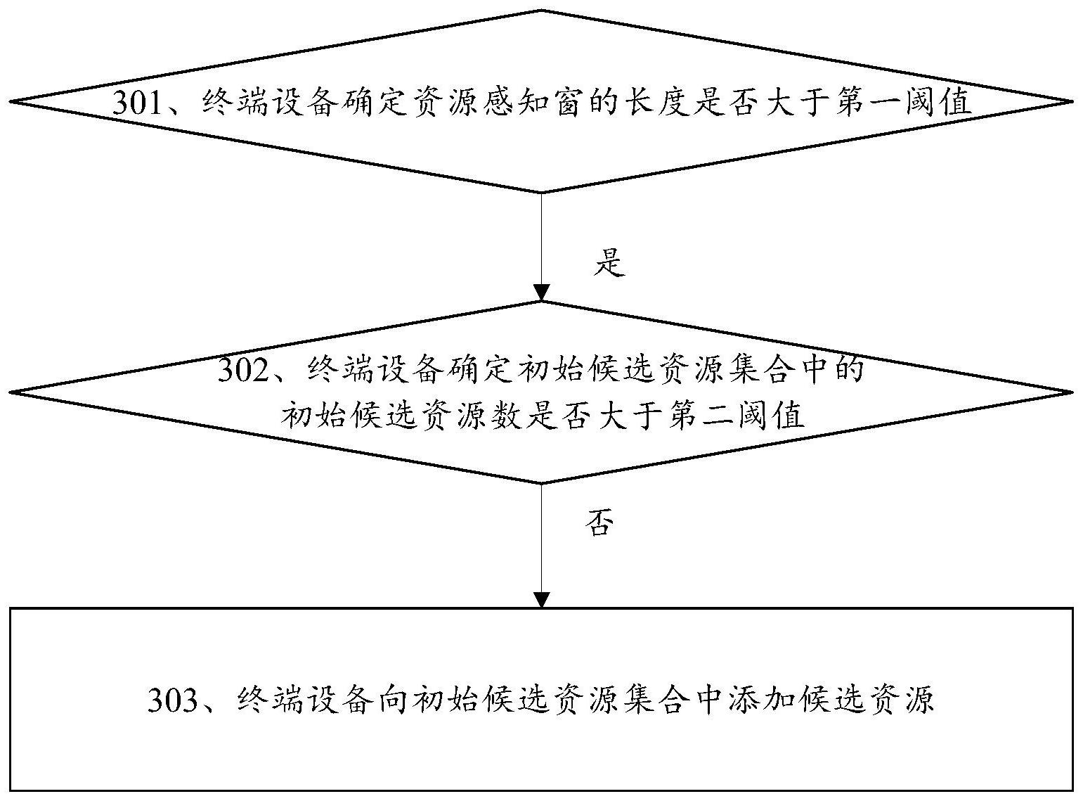 本申请公开了一种资源集合确定方法、装置、芯片及模组设备,该方法包括:确定资源感知窗的长度是否大于第一阈值;若资源感知窗的长度大于第一阈值,则确定初始候选资源集合中的初始候选资源数是否大于第二阈值;若初始候选资源数小于或等于第二阈值,则向初始候选资源集合中添加候选资源。基于本申请所描述的方法,有利于保证初始候选资源集合中的初始候选资源充足,从而可提高最终可用的候选资源集合中质量较好的候选资源的数量,提升侧链路传输可靠性。