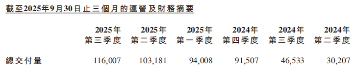 2025年第三季度,小鹏汽车总交付量达116,007辆,较2024年同期的46,533辆同比激增149.3%,交付规模实现跨越式增长。截至2025年10月31日,公司年内累计总交付量已达355,209辆,市场拓展成效显著。