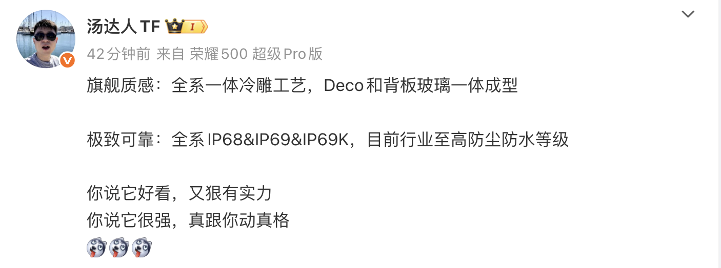 11月17日,荣耀产品经理“汤达人TF”发文称,荣耀500全系采用8000mAh青海湖大电池。