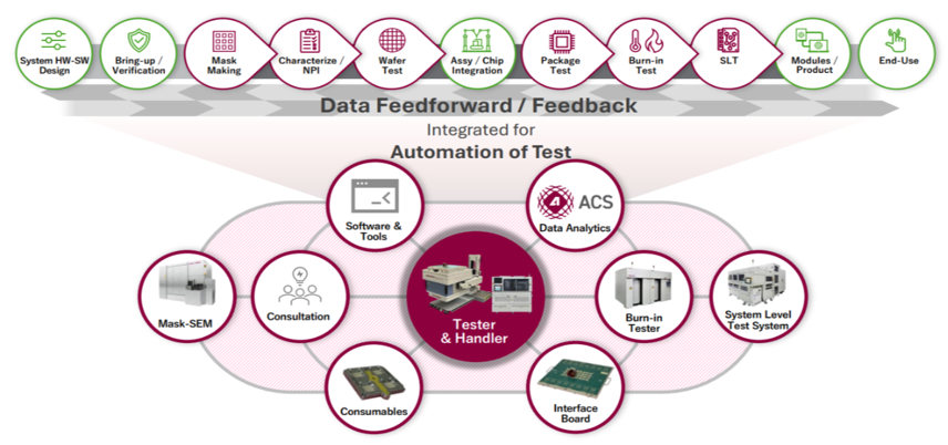 接下来,我们将介绍爱德万测试提出的数据前馈/反馈机制(Data Feedforward / Feedback,简称DFF),以及它如何通过ACS Nexus这一核心组件,在实际生产中实现数据驱动的智能测试。通过DFF,我们希望构建一个真正智能的测试系统——