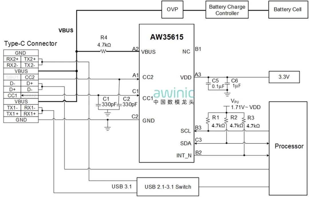 在整机设计中,水汽检测芯片通常与 AP控制器、PD Controller、OVP 芯片、MOSFET 等器件协同工作。艾为建议设计时关注以下关键点:
