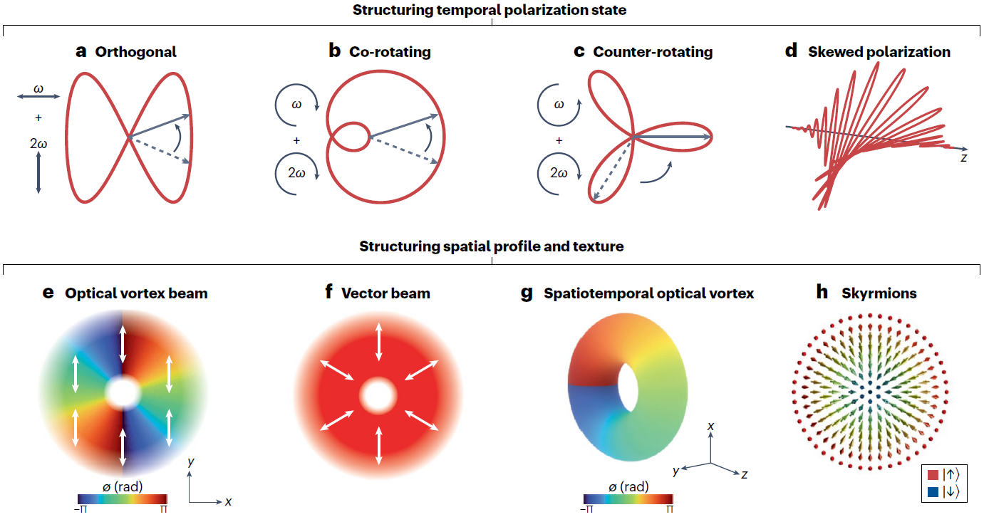近日,北京大学物理学院现代光学研究所、人工微结构和介观物理全国重点实验室和纳光电子前沿科学中心刘运全教授课题组在《自然·综述·物理》(Nature Reviews Physics)发表综述文章《结构光驱动下的超快物理》(“Ultrafast physics with structured light”)。文章结合本课题组以及国际上最新研究成果,全面综述了“时间域结构光场”和“空间域结构光场”对束缚电子和自由电子物理系统的相互作用,特别是对在“强场电离”“高次谐波产生”和“自由电子谱学”等超快物理过程中的应用和发展进行了深入探讨。