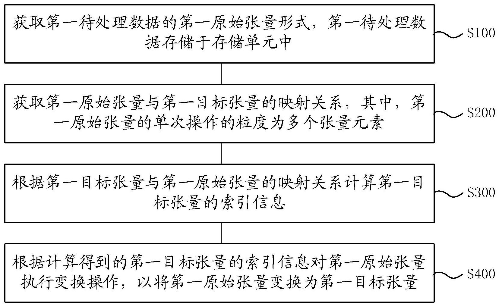 一种数据处理方法及其装置、电子设备、存储介质。该数据处理方法包括:获取第一待处理数据的第一原始张量形式,第一待处理数据存储于存储单元中;获取第一原始张量与第一目标张量的映射关系,其中,第一原始张量的单次操作的粒度为多个张量元素;根据第一目标张量与第一原始张量的映射关系计算第一目标张量的索引信息;根据计算得到的第一目标张量的索引信息对第一原始张量执行变换操作,以将第一原始张量变换为第一目标张量。该数据处理方法能够减少张量变换的次数,减少资源消耗,提升系统性能。