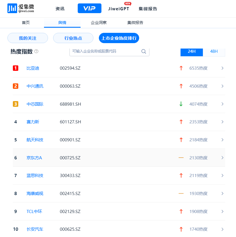 发现热点靠“排行”,企业热度指数:爱集微VIP舆情新工具上线