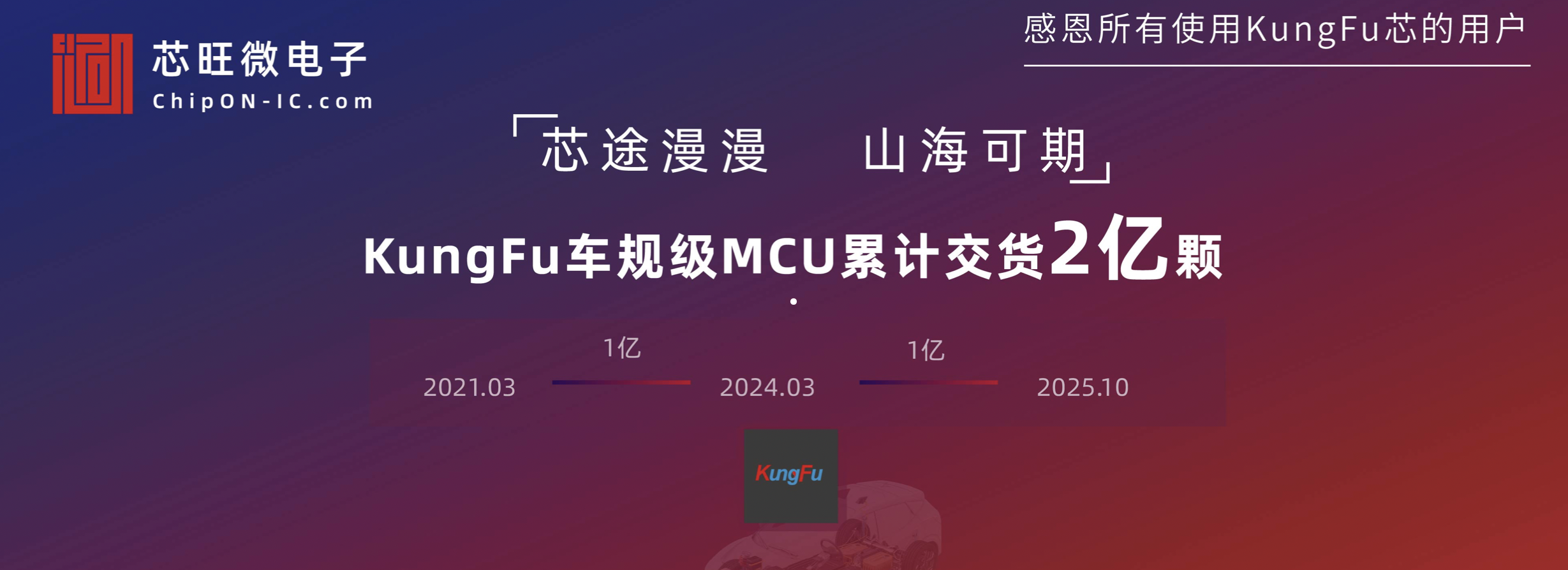 11月26日,芯旺微电子官方宣布,其KungFu车规级MCU累计交付量正式突破2亿颗。