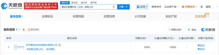 股权结构方面,新设公司由寒武纪通过旗下主体持股100%,为其全资子公司。根据工商登记信息,寒武纪智算科技(北京)有限公司的业务类型包括集成电路设计与制造、技术服务和相关产品销售,未来有望与母公司在AI芯片、算力平台等板块形成协同。