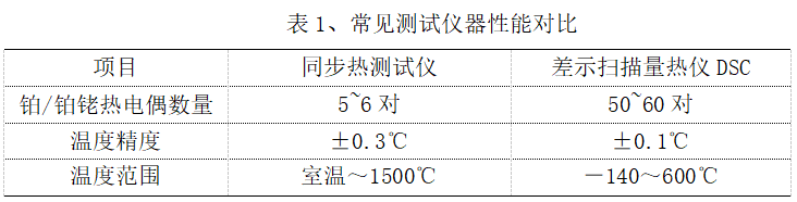 目前,材料热学参数测定常见仪器有:同步热测试仪、差示扫描量热仪。