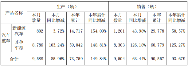 12月3日,千里科技发布2025年11月产销快报公告,11月合计生产汽车9588辆,较去年同月同比增长85.96%;本年累计产量达73759辆,较去年同期累计同比增长149.84%。销售方面,11月合计销量为9504辆,同比增长63.44%;本年累计销量90557辆,较去年同期累计同比大幅增长93.67%,产销增长势头强劲。