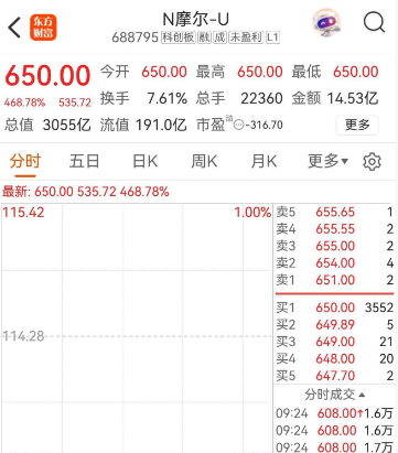 12月5日,“国产GPU第一股”摩尔线程上市首日高开468%,报650元/股,市值突破3000亿元。按开盘价计算,中一签赚超26.7万元。