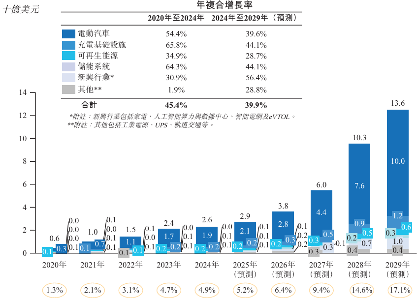 新兴行业中,碳化硅功率半导体器件的应用价值同样凸显。在人工智能算力与数据中心领域,相同输出功率下,碳化硅器件的能量转换效率高于传统硅基器件,能够帮助数据中心减少功率模块使用数量,降低运营成本。2024年至2029年,全球算力预计将以65.0%的年复合增长率增长,到2029年,全球数据中心电力消耗将超过2676太瓦时,对高效功率器件的需求极为迫切。