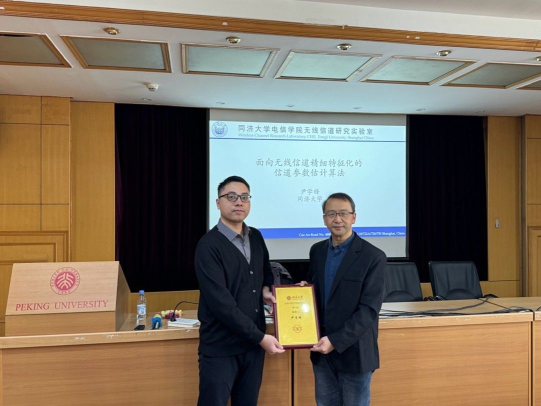 2025年12月26日下午,北京大学电子学院前沿论坛第九十七期讲座在理科二号楼2736报告厅成功举办。讲座特邀同济大学本科生院院长、新生院院长、创新创业学院常务副院长、国豪书院执行院长、启迪书院执行院长尹学锋教授担任主讲嘉宾,报告主题为 “面向无线信道精细特征化的信道参数估计算法”。本次讲座由北京大学预聘副教授蔡雪松主持,吸引了三十余位师生到场聆听并积极参与交流。