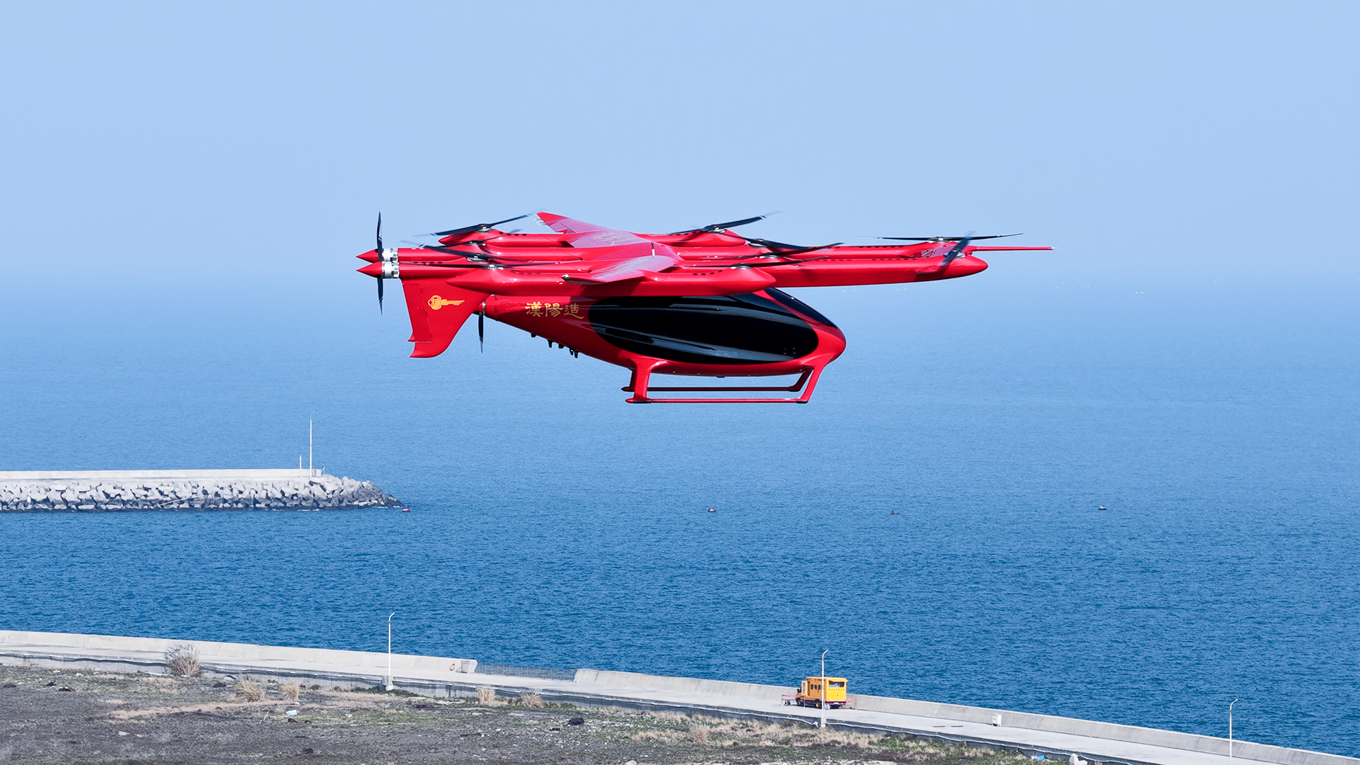 峰飞航空自主研发的凯瑞鸥采用复合翼构型,既能像直升机一样垂直起飞,也可以如固定翼飞机一样高效巡航,最大起飞重量2吨,最大商载400公斤,适用航程200公里。其已获民航局颁发的型号合格证(TC)、生产许可证(PC)与单机适航证(AC),是全球首个“三证齐全”的吨级以上eVTOL机型。