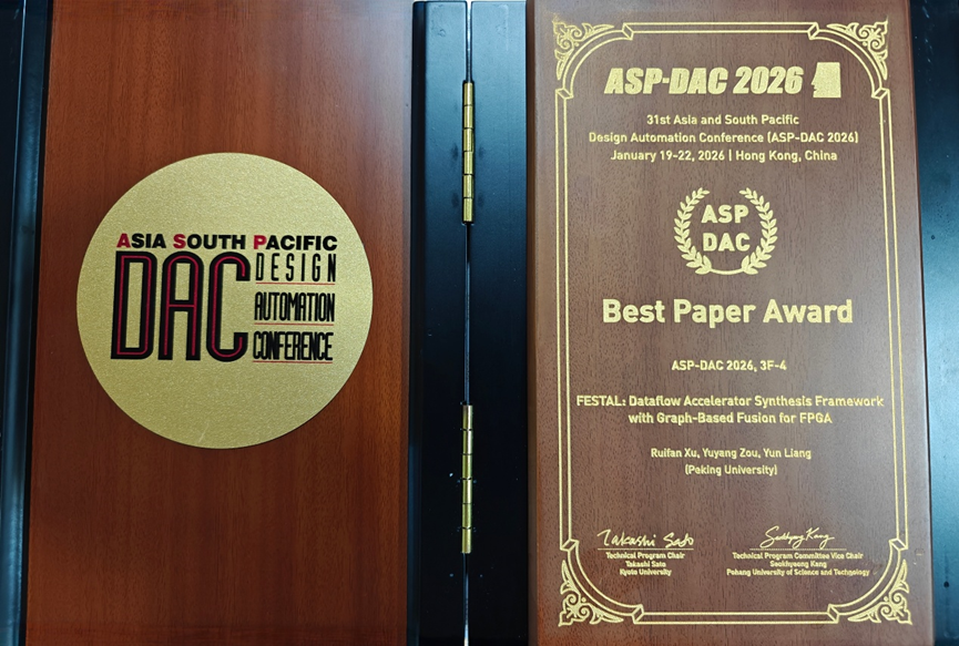 在本届大会上,北京大学集成电路学院EDA团队表现优异,梁云教授团队荣获大会最佳论文奖(Best Paper Award),博士生郭资政荣获学生科研论坛最佳海报奖(SRF Best Poster Award),林亦波副教授团队受邀发表特邀论文并发布了面向工业级设计的异构加速静态时序分析引擎HeteroSTA。 这些成果标志着学院在异构计算辅助芯片设计、高层次综合以及芯片性能分析领域取得了一系列重要进展。相关成果简介如下: